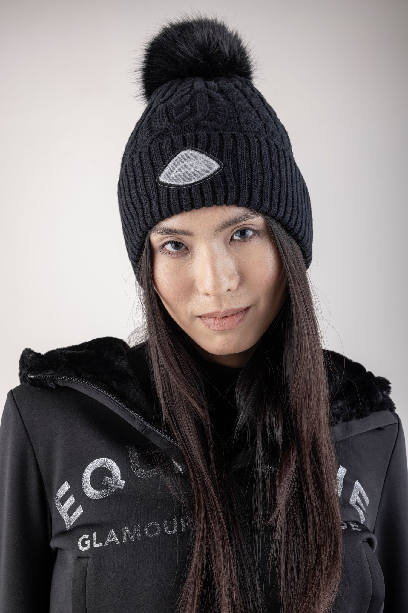 An accessory is more than just an add-on—it’s a statement of style and functionality, and the Knitted Pon Pon Hat delivers both effortlessly. Crafted for warmth, it features a soft and lightweight micropile lining that ensures all-day comfort. The eco-fur pon pon lends a sophisticated yet sustainable touch, while delicate black microstuds add a modern, understated shine. Completing the design is the EQUILINE logo patch, accented with sequins for a subtle sparkle. Perfect for elevating your winter wardrobe, this hat blends elegance with practicality.