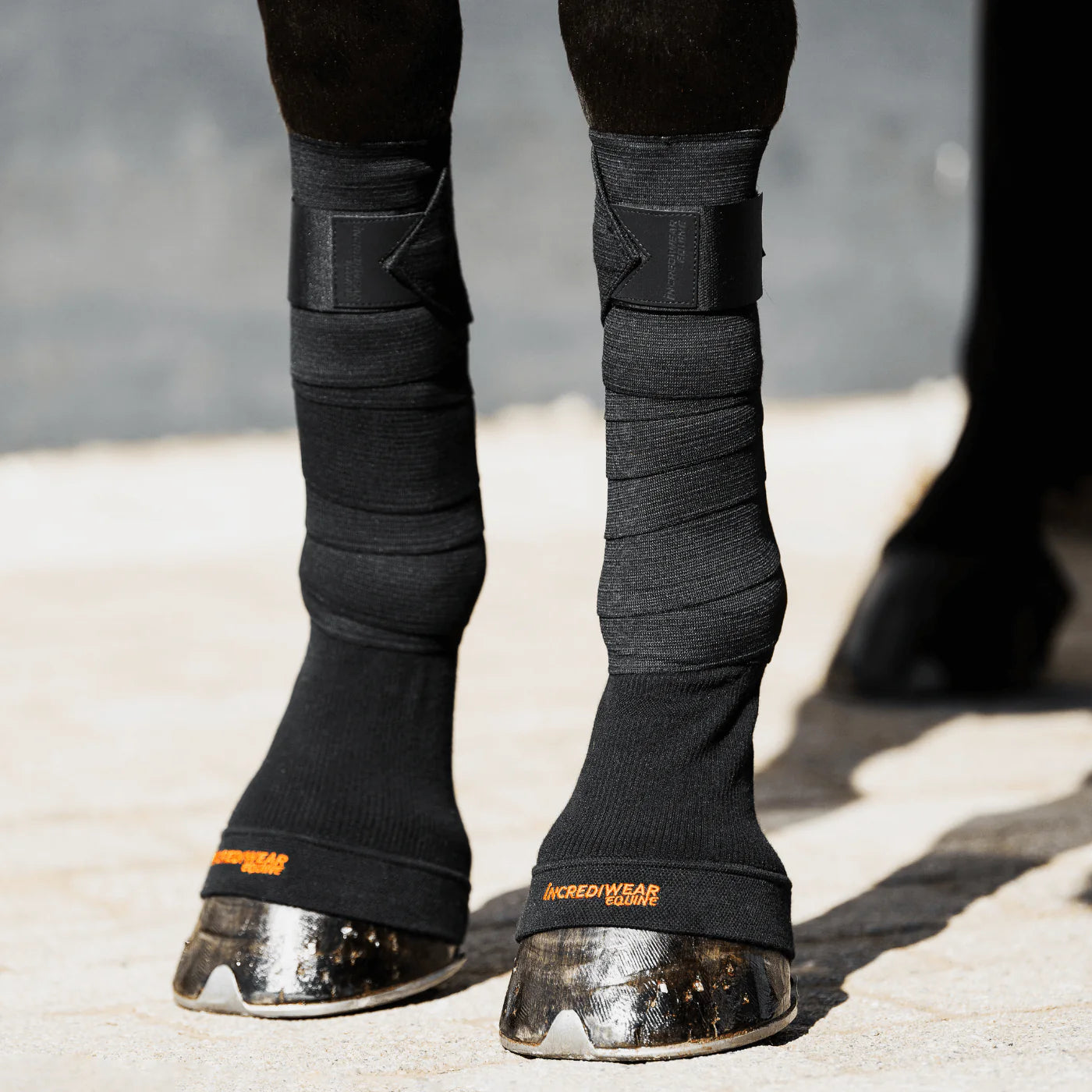 3. Remove the Circulation Exercise Bandages and place the Incrediwear Equine Circulation Standing Wraps and/or Incrediwear Circulation Hoof Socks on for up to 24hrs (dry).